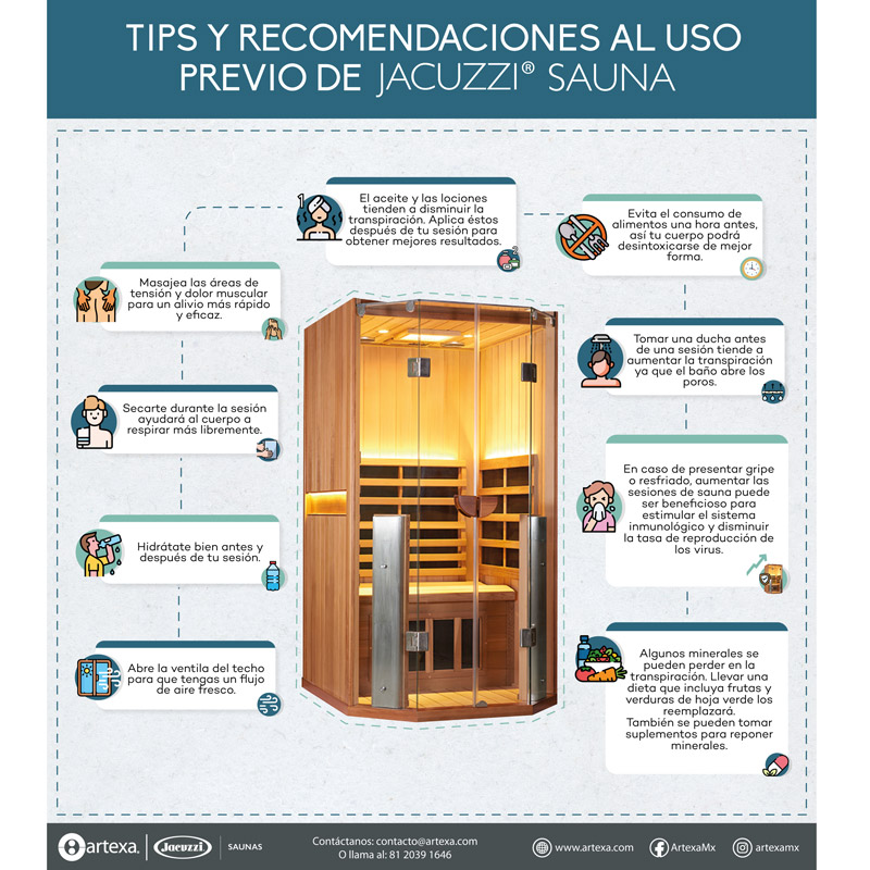 CABINA SAUNA INFRARROJO - 4 PERSONAS - CEDRO ECO-CERTIFICADO - MEDIDAS: 1.80X0.96X1.19X1.96 MTS - JACUZZI® SAUNASU DISEÑO CONTEMPORANEO E INNOVACION REVOLUCIONARIA, LAS SAUNAS SANCTUARY® SON DIFERENTES A LAS DEMAS. SON LAS UNICAS SAUNAS INFRARROJOS DE ESPECTRO COMPLETO QUE OFRECEN TECNOLOGÍAS AVANZADAS CON INFRARROJO DE CERCANO, MEDIO Y LEJANO ALCANCE. NUESTRO ROBUSTO SISTEMA DE CALEFACCION TRUE WAVE FULL SPECTRUM PROPORCIONA TODAS LAS LONGITUDES DE ONDA PARA OPTIMIZAR SU SESION DE SAUNA. EL CONTROL DE SAUNA DIGITAL DE ULTIMA GENERACION FUNCIONA EN CONJUNTO CON LA APLICACION PARA BRINDARLE LA CAPACIDAD DE CONTROLAR SU SAUNA DE FORMA REMOTA.CARACTERISTICAS: