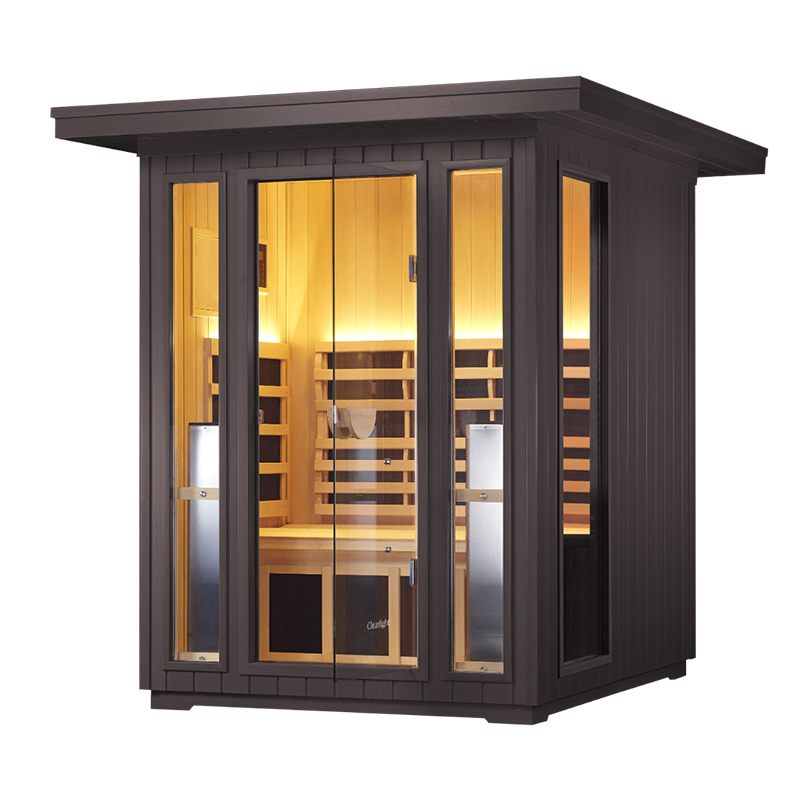 SAUNA INFRARROJO PARA EXTERIOR DE EXPECTRO COMPLETO QUE OFRECE TECNOLOGIA AVANZADA DE INFRARROJO CERCANO, MEDIO Y LEJANO. PARA 2 PERSONAS. CUENTA CON UN SISTEMA DE CALEFACCION TRUEWAVE FULL SPECTRUM QUE PROPORCIONA TODAS LAS LONGITUDES DE ONDA PARA OPTIMIZAR TU SESION DE SAUNA.